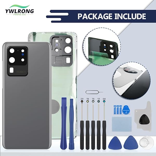 - YWLRONG for Samsung Galaxy S20 Ultra 5G Back Glass Replacement Rear Glass G988 Battery Cover Housing Door Accessories Parts with Repair Tools(Grey) with reliable performance and quality- CompatibilityCompatible for Samsung Galaxy S20 Ultra/S20 Ultra 5G G988 Battery Cover Replacement with the pre-installed camera Frame.Please be sure to correctly identify your model before purchase. Compatible with SM-G988B SM-G988U SM-G988W SM-G9880 SM-G988N back glass replacement.- Applica