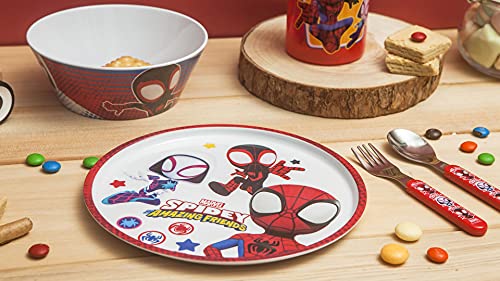 Zak! Marvel Spidey Dinnerware Set for Kids - 5-Piece Durable Plastic & Stainless Steel - Perfect for Ages 3+