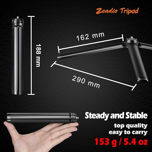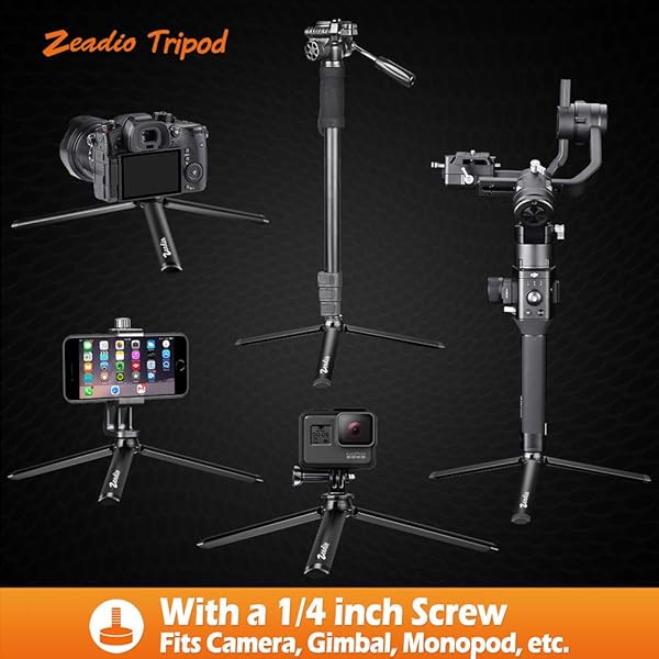 - Zeadio Metal Mini Tripod, Desktop Tabletop Stand Tripod with 1/4 Inch Screw for Smooth 4, Crane Plus, Crane 2, Osmo Mobile, Ronin-S, Vimble 2, Gimbal Handle Grip Stabilizer and All Cameras offers reliable performance and quality- Made entirely of Metal, top quality, solid and stable- Pocket size, easy to carry- With non-skid rubber feet- Portable and Multi-Use. Meeting various shooting needs in outdoor or indoor
