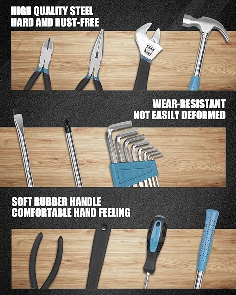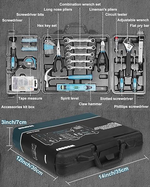 - Zeite Tool Kit for Home, 144 Piece Hand Tool Set with Storage Box, General Basic Repair Tool Set with Hammer, Pliers, Wrenches, Voltage Tester, Measure Tape, Screwdriver Bits with reliable performance and quality- Multi-functional Hand Tool Set: Versatile and easy to handle, this basic home tool kit is a practical and professional helper, whether it's for repair or maintenance, drilling, furniture and toy assembly and design, this portable hand tool set will meet all your needs</l