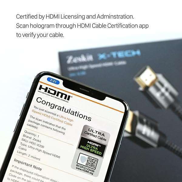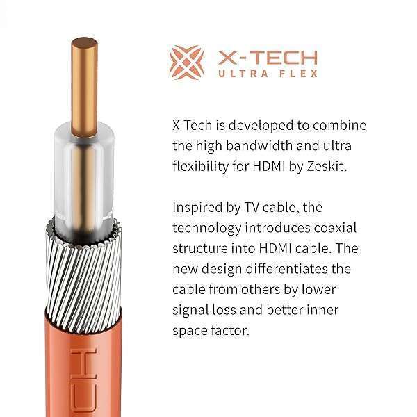 - Zeskit X-Tech 48Gbps Ultra High Speed HDMI Cable 1.5ft, 8K60 4K120 144Hz eARC HDR HDCP 2.2 2.3 Compatible with Dolby Vision Apple TV 4K Roku Sony LG Samsung Xbox Series X RTX 3080 PS4 PS5 provides ...- 0.5m / 1.5 ft, X-Tech combines the ultra high bandwidth and ultra flexibility for HDMI cable- Ultra High Speed HDMI Cable Certified (w/ Hologram Sticker)- 48Gbps bandwidth for latest features HDR, HDCP 2.2 & 2.3, DTS:X, Dolby Atmos, Dolby Vision