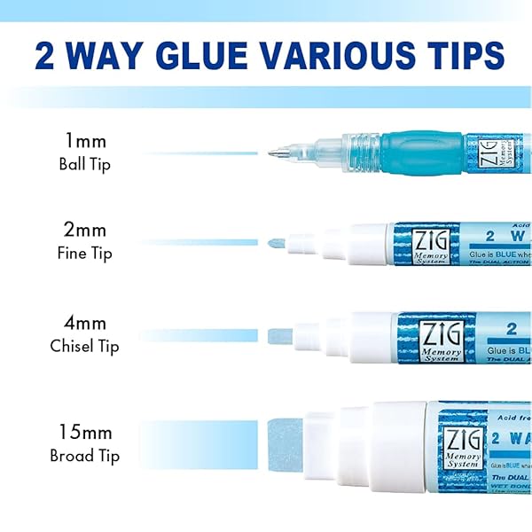 - Zig Kuretake 2 Way Glue Stick Pen, Board Tip,15mm Tip, AP-Certified, Made in Japan provides reliable performance and quality- [BOARD TIP] 30mm Board tip makes it easy to use, with drip-free application to prevent messes and keep your workspace clean.- [2 WAY GLUE] When applying, for a permanent bond use when glue is blue and wet. For a more temporary adhesive, let sit and dry until glue becomes clear.