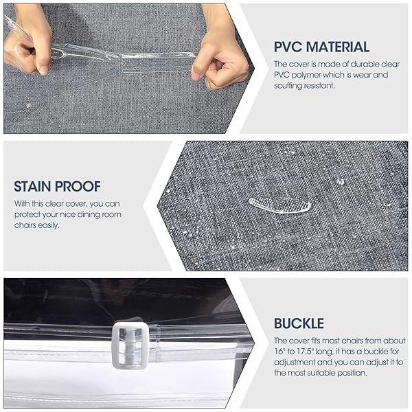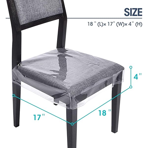 - Zipcase 4 Pack Stain, Water and Kitty Scratch Resistant Clear Dining Chair Covers/Slipcovers Chair Protector Waterproof PVC Material, 17D x 18W x 4H with Adjustable Belt Strap, Set of 4: reliable performance and quality- Dimension - 17"D x 18"W x 4"H, please measure your- Easy to Clean: Zipcase clear chair slipcovers are- Heavy-duty PVC Material: The cover is made of durable- Appropriate Size Fits for most: The cover fits most