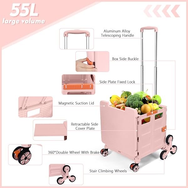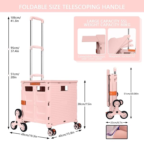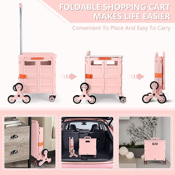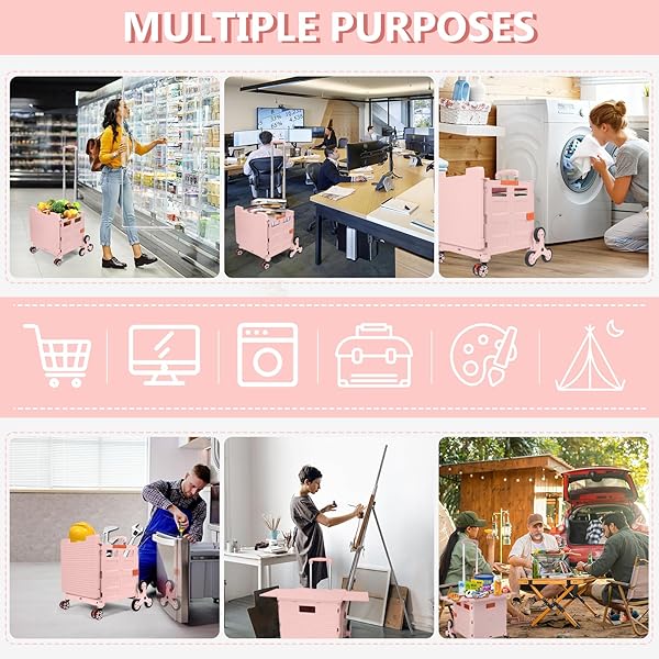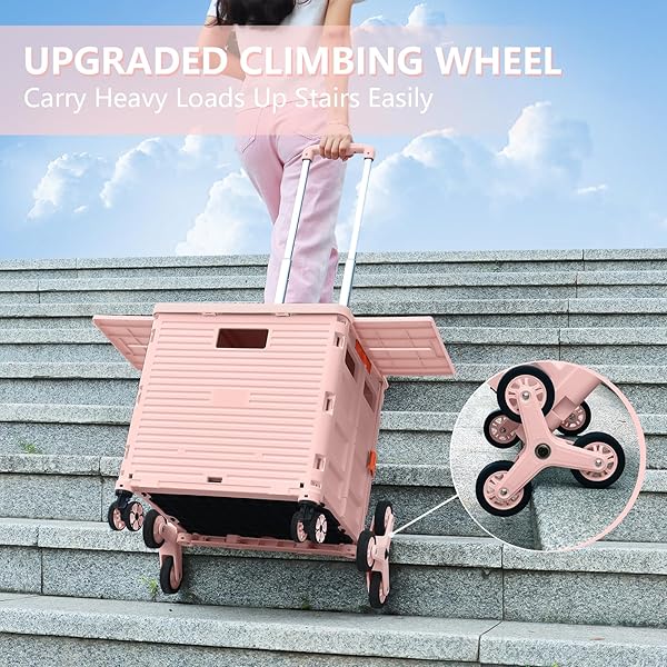 - Foldable Utility Cart with Stair Climbing Wheels,Collapsible Rolling Crate with Magnetic Lid Telescopic Cover,Telescoping Handle,360 Rotate Wheel Hand Cart for Teacher Shopping Moving Grocery(Pink) with reliable performance and quality- 360Swivel front Wheels&Stair Climbing WheelsWe equip our Collapsible rolling cart with 6 stair climbing wheels and 2 360noiseless Swivel Wheels with brakes.The TPE rubber wheels enhance the wear resistance, allowing you to experience optimal maneuv