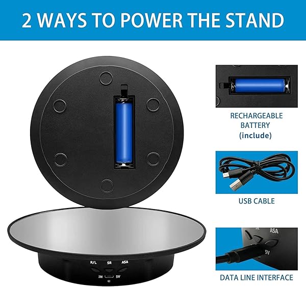 * ZLMONDEE Motorized Rotating Display Stand, 7.87inch /17.6LB LoadMirror Covered 360 Degree Turntable Display Stand for Photography Products and Shows, Max Load 8KG/ 20CM Video Show(Black): no standalone lithium batteries are sold with the product * 360 Rotating Turntable: Our jewelry Rotating display has third gear manual speed adjustment 8/15/30-seconds / lap * And 3 angles display--90 * You can adjust according to various demands * Adopts 360 turntable design