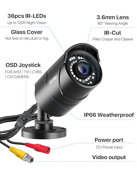 - ZOSI 1080P 1920TVL Security Camera Outdoor Indoor,Hybrid 4-in-1 TVI/CVI/AHD/960H CVBS Bullet Cam for Analog Home Office Surveillance DVR CCTV System,IP67 Weatherproof,120ft IR Night Vision,Black offers reliable performance and quality- 2.0MP HD 1080P 4-IN-1 Security CameraThis is 4-in-1 TVI/CVI/AHD/CVBS Bullet Camera. compatible with 960H,720P,1080P,3MP,5MP,8MP,4K HD-TVI, AHD, CVI, and CVBS/960H analog DVRs