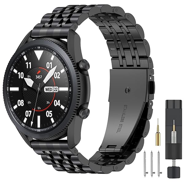 - ZPJPPLX 22mm Galaxy Watch 3 45mm Band, Stainless Steel Metal Straps Compatible with Samsung Gear S3/Garmin Forerunner 265/745/Vivoactive 4/Amazfit GTR3 Pro/GTR4 for Men,Black with reliable performance and quality- This watch band has a width of 22mm.Please measure if your original watch strap is 22mm,Or confirm that your watch model is suitable for 22mm strap- Compatible Models: 22mm Watch band Compatible with Galaxy Watch 3 45mm/Galaxy Watch 46mm(2018)/Gear S3 Frontier /Cl