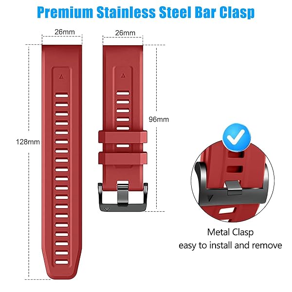 - ZPJPPLX 26mm Compatible with Garmin Fenix 8 AMOLED 51mm/7X Pro/6X Pro/7X/6X/5X Plus/5X bands,Silicone watch band for Descent Mk2i MK3i 51mm/Enduro 3/2/epix Pro 51MM/tactix 7 AMOLED/tactix 7 Pro with reliable performance and quality- Attention please :Please measure whether your original strap is 26mm before purchasing, this band is 26mm width! If you buy the wrong size, please contact seller for a replacement- Watch Band Width and Compatibility : This 26mm width sport silic