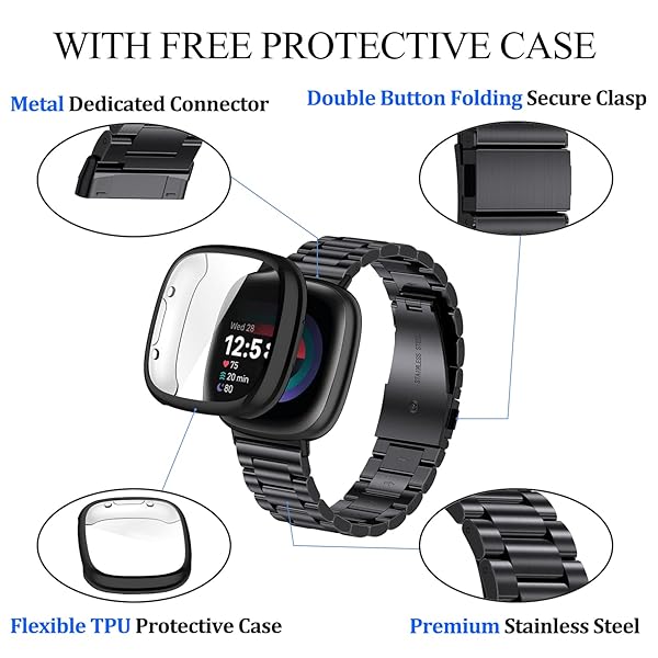 - ZPJPPLX for Fitbit Versa 4 Metal Watch Band with Soft TPU Case,Compatible with Fitbit Sense 2 Stainless Steel Strap and Screen Protection Case for Men Women,Black with reliable performance and quality- CompatibilitySpecially designed for Fitbit Versa 4 and Fitbit Sense 2, Fit for 6.4''~8.3'' Wrist Size. Please make sure the metal strap fits your wrist size- Free Same Color Watch Case Come with a same color all around soft TPU plated case, which can protect your Sense 2 and